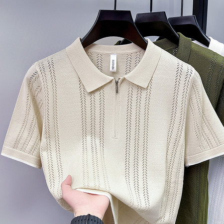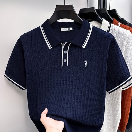 莫代尔+桑蚕丝 +编织特色电脑领新款短袖T恤POLO衫