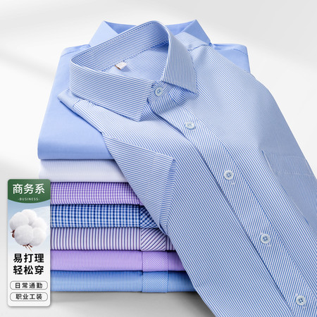【白板】货号566720纯棉牛津纺格纹短袖衬衫5色【提供罗蒙 恒源祥 皮尔卡丹 雅戈尔 啄木鸟等整套平铺图 货源充足】